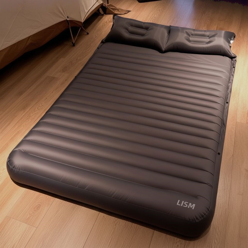 - Our 2-person sleeping mat is made of ultra hard 40D nylon and TPU coating, which is durable and tear resistant, making it suitable for various outdoor environments. Combined with ergonomic pressure dispersing water wave design and integrated pillow, the air cushion provides ultimate comfort whether you are lying on your back, side or prone.