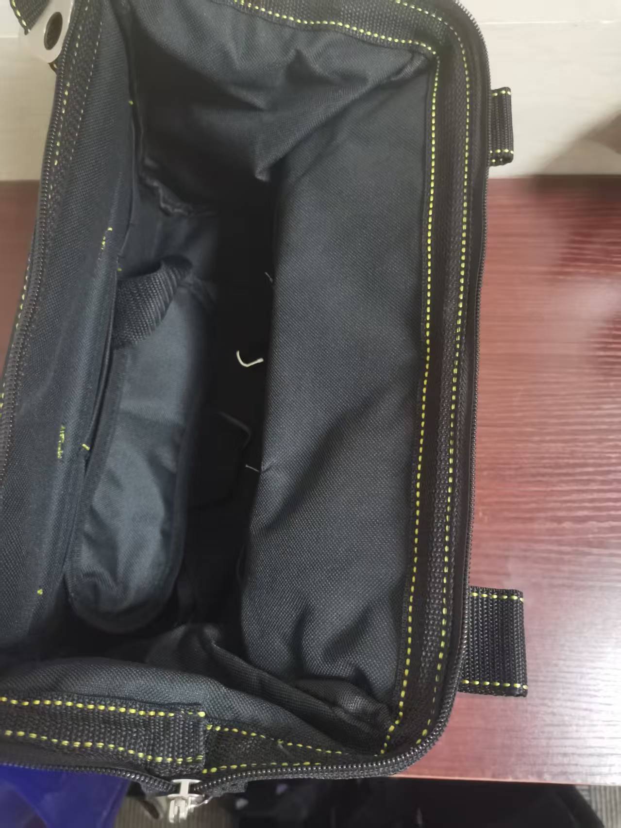 - The toolkit is made of 600D polyester fiber fabric, which is durable and has a wide opening for easy access to tools.